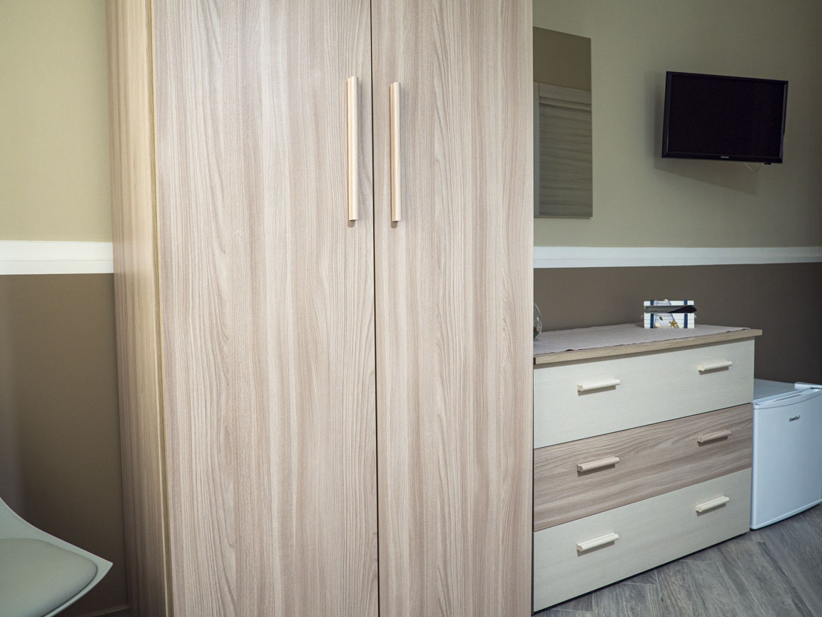 La Atena è una camera luminosa e spaziosa, arredata con gusto ed eleganza, studiata per rendere il tuo soggiorno confortevole e riservato. Situata al pian terreno con finestra sul giardino, la Atena, è dotata di Climatizzatore, TV led, bagno in camera con doccia e di accesso ad internet tramite il servizio WiFi ad alta velocità.
